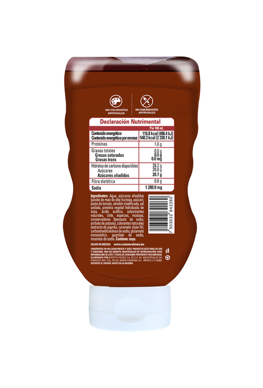 Se sugiere una cantidad de 45 ml (1 ½ oz) por cada orden de 5 costillas. Para otros usos como marinado o salseo en carnes, aves, pescados y mariscos por cada 150 gr se recomiendan 30 ml de salsa.
