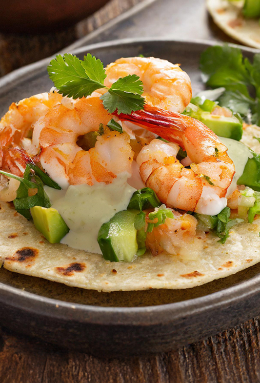 Mariscos, tacos, tostadas, vegetales.